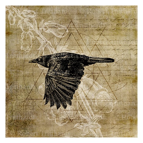 The Foxglove Crow Print predominantly features a beautiful Pen & Ink drawing of a Crow in Flight over a colorful background of Ephemera Elements including Sacred Geometry and the Foxglove Plant. It is perfect addition to any Witchy, Gothic, Apothecary, or Mystical Art Collection or Display.