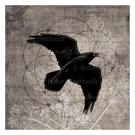 The Hemlock Crow Print predominantly features a beautiful Pen & Ink drawing of a Crow in Flight over a colorful background of Ephemera Elements including Sacred Geometry and the Hemlock Plant. It is perfect addition to any Witchy, Gothic, Apothecary, or Mystical Art Collection or Display.