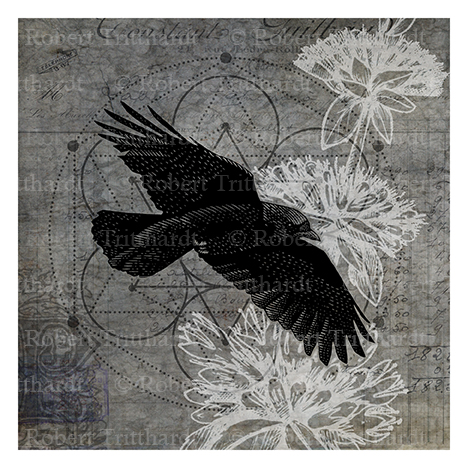 The Pennyroyal Crow Print predominantly features a beautiful Pen & Ink drawing of a Crow in Flight over a colorful background of Ephemera Elements including Sacred Geometry and the Pennyroyal Plant. It is perfect addition to any Witchy, Gothic, Apothecary, or Mystical Art Collection or Display.